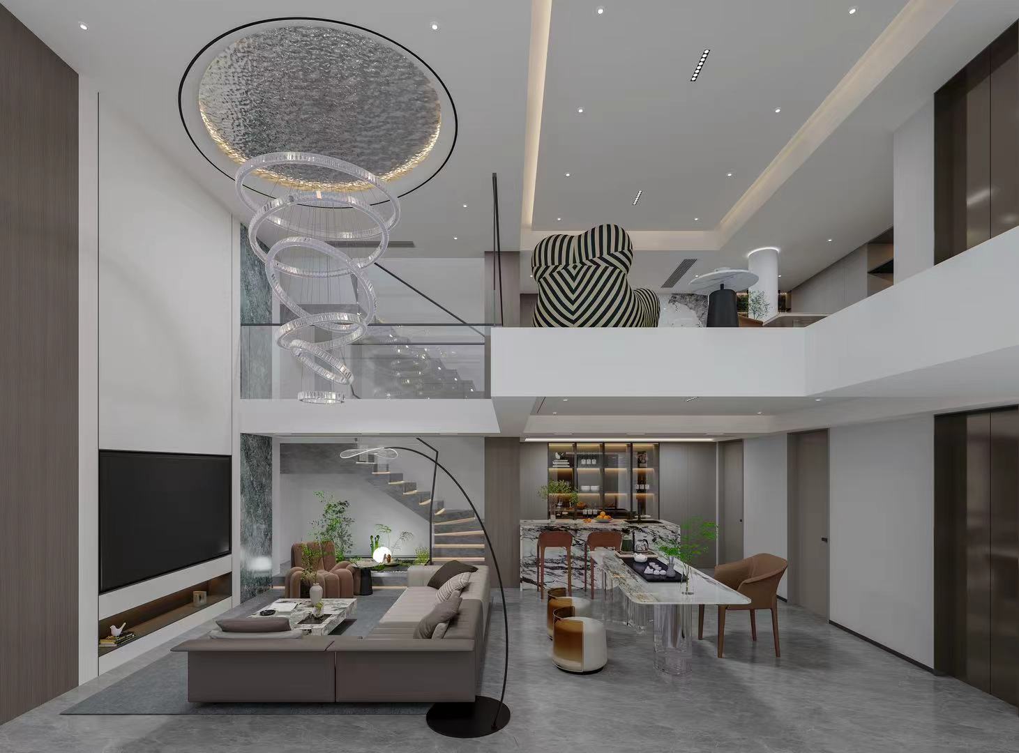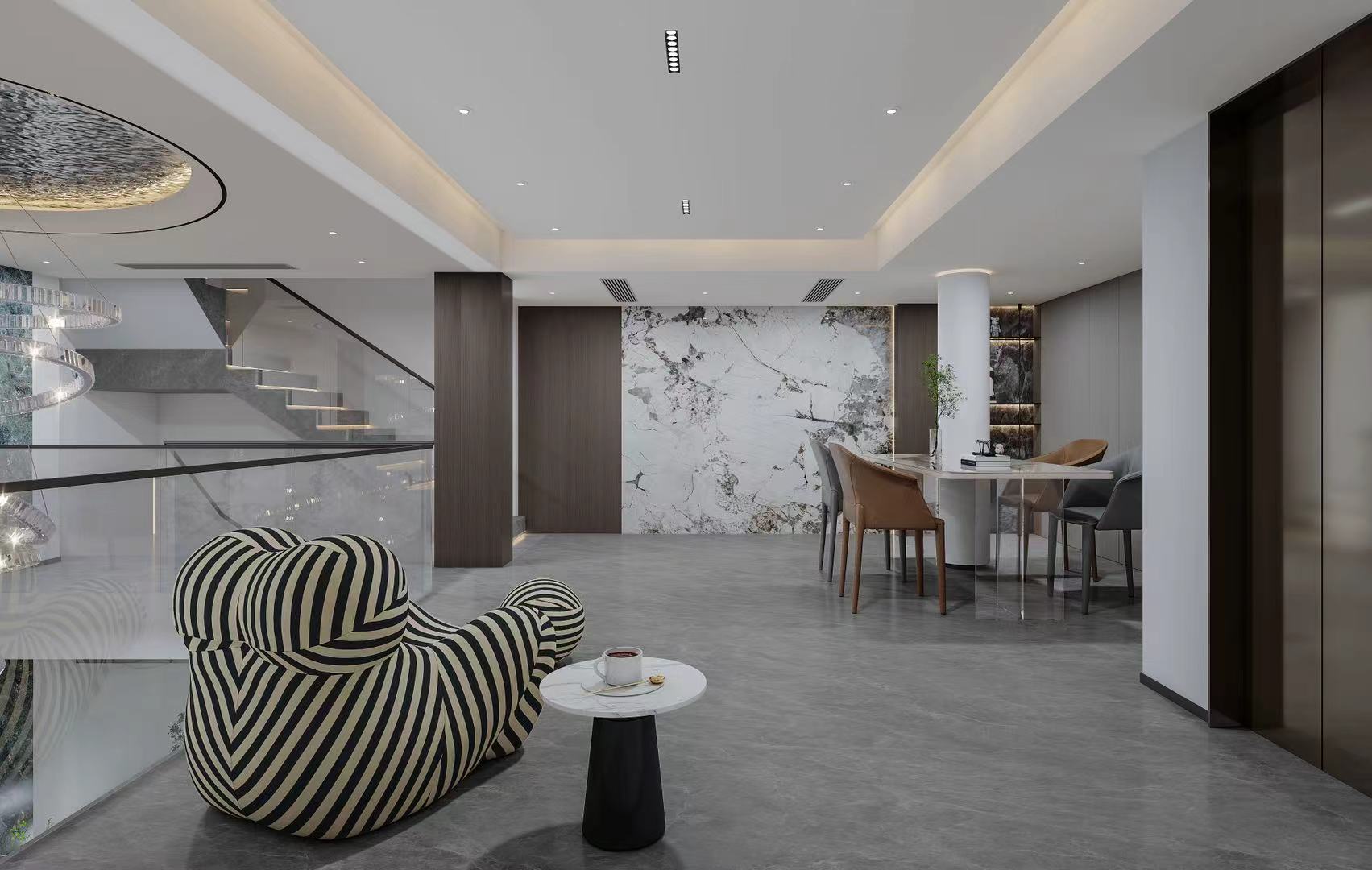 本多层户型巧借挑空与纵向空间,融合现代极简与轻奢风格,打造全龄适配的高品质居住空间。