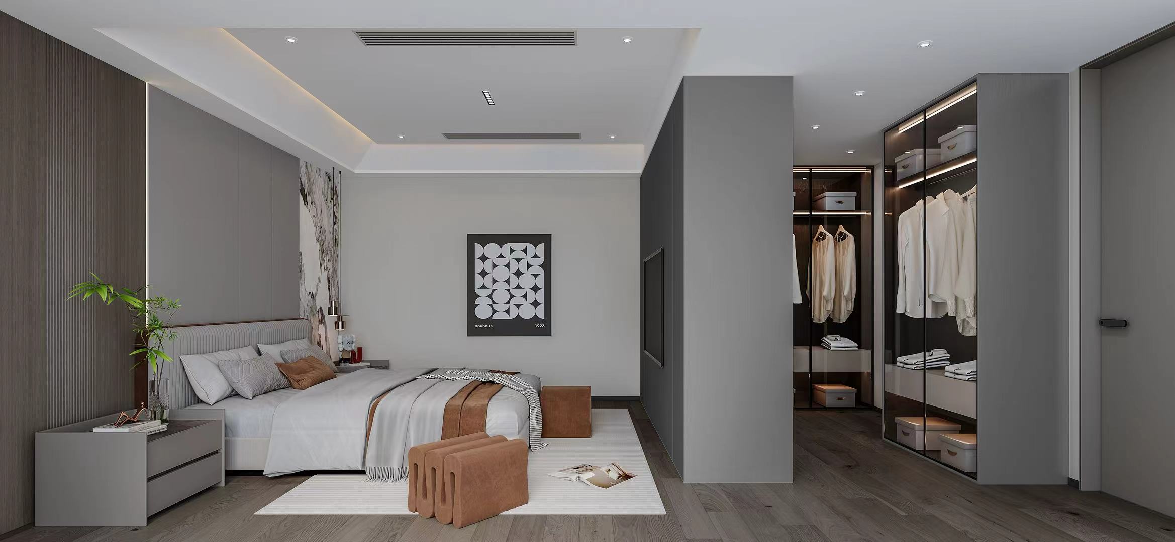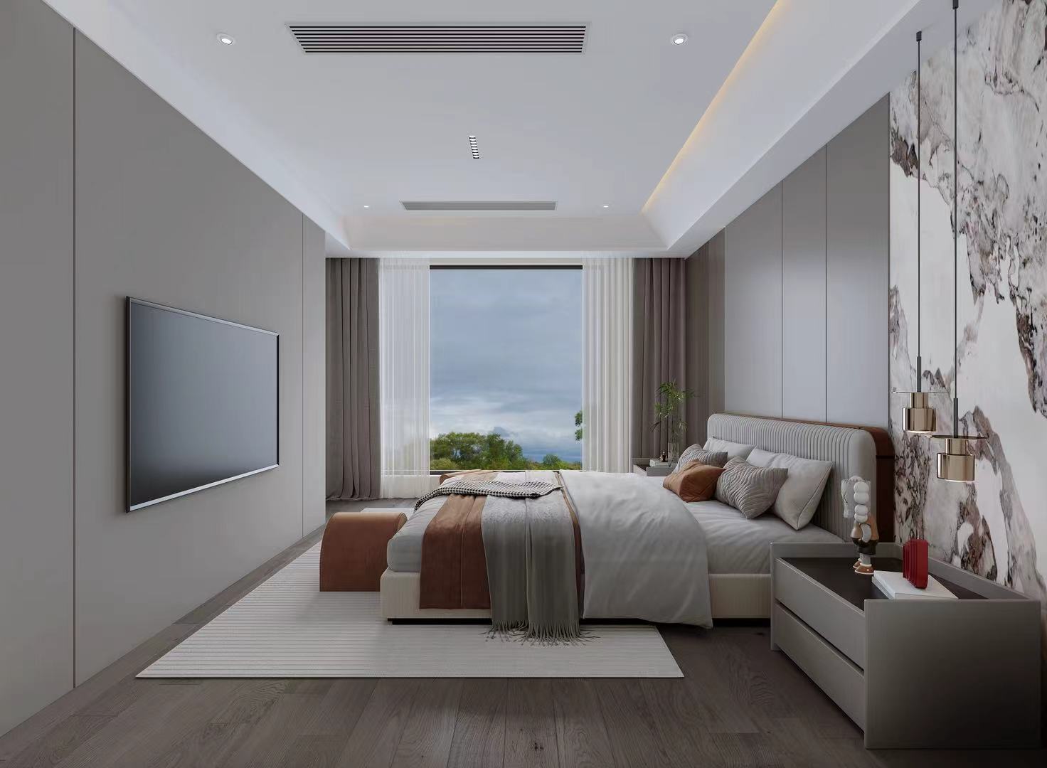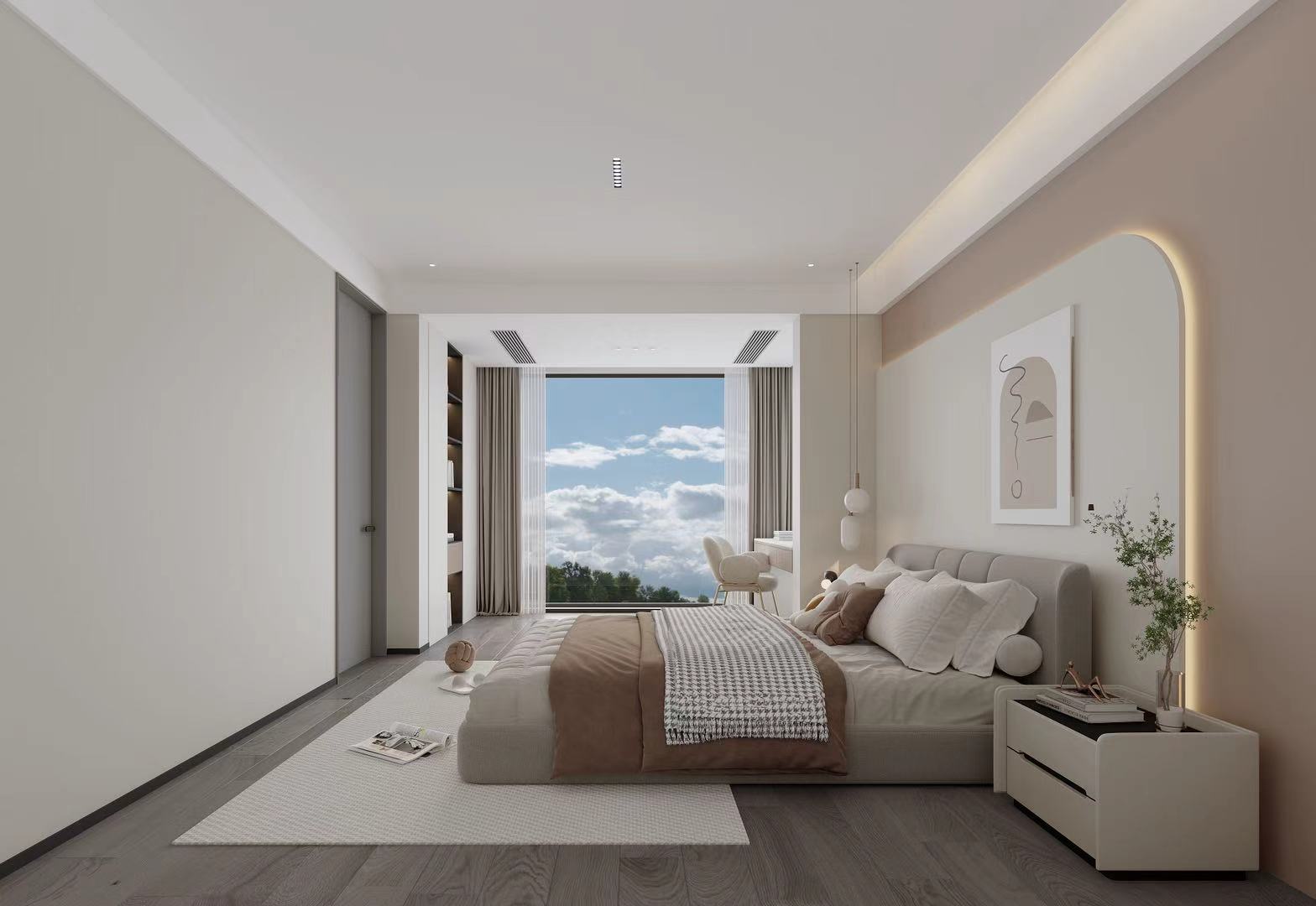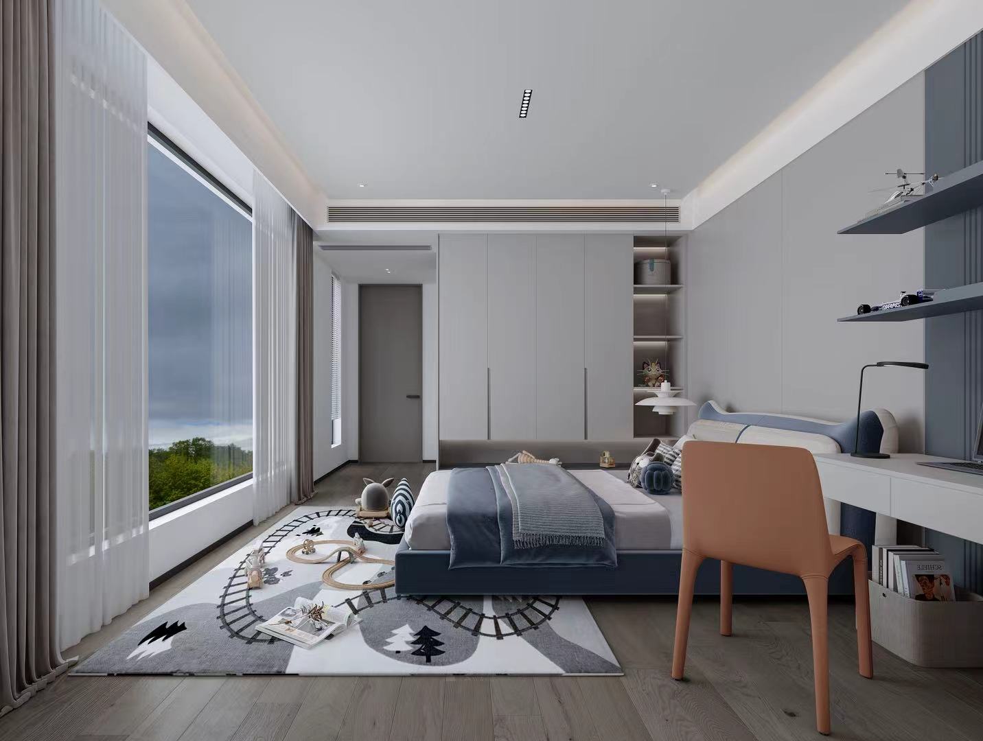 二、三层聚焦全龄居住,主卧、长辈房、儿童房及次卧各有风格,兼顾舒适、私密与实用。动线规划流畅,全景落地窗、挑空设计与无主灯系统,优化采光通风,强化空间层次与艺术氛围。
