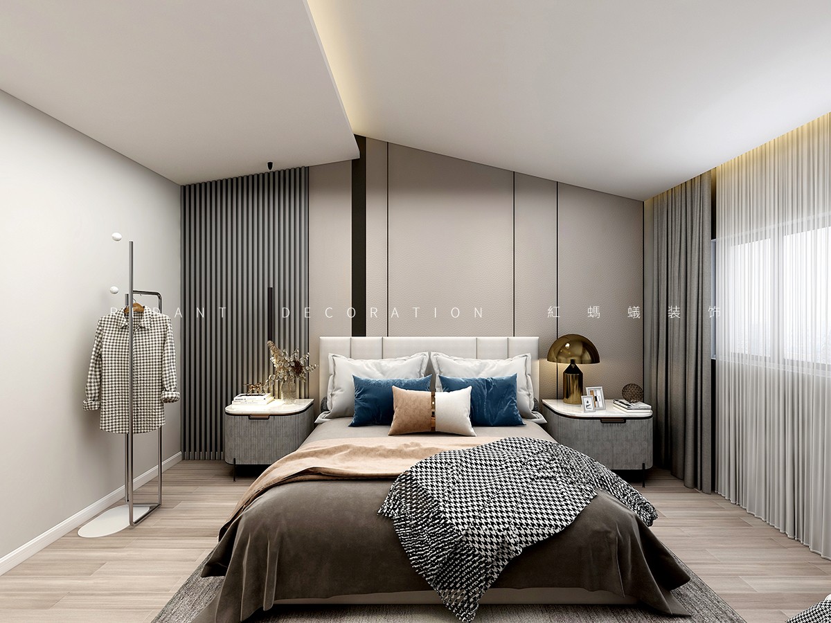 结构上,我们打开了一楼的一个卫生间和一个卧室空间。把其中一个卧室改造成餐厅空间,增加餐厅和客厅的空间互动。原始餐厅改造成西厨空间,减少原有小厨房的功能压力。同时让西厨、客厅、餐厅形成一个大的活动区。同时大量采用多通道及窗透设计,增加空间的互动性。楼梯位于公共楼梯上方,一个很大的楼梯空间没法利用,我们借用一部分楼梯空间,改造成儿童滑梯空间。增加空间的趣味性。二楼整体卫斜坡顶面,部分高低偏低,我们结合原始坡度,增加局部的层次,让二楼的层高得到大大提升。墙面大面积暖色系材质,木饰面及石材的运用。增加空间品质的同时,空间也不会觉得冰冷,营造一个温馨舒适的住家环境。